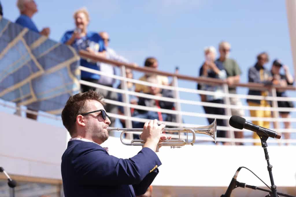 Call me a homer, but I remember my inaugural sailing on The Jazz Cruise in 2024 and how remarkable it was to see so many jazz luminaries in one place, on one stage, night after night. I’ve been to many jazz festivals around the world both as a performer and patron and, even on their most star-studded day, you can’t recreate the magic on the ships. I remember the “Bump It with a Trumpet” summit led by Randy Brecker, including Sean JonesTerell Stafford, James Morrison, Bria Skonberg…the list goes on and on. It was like a young version of myself as a trumpeter’s dream to stare up at that group of my biggest heroes. Little did I know the next year I’d be up on stage with them.